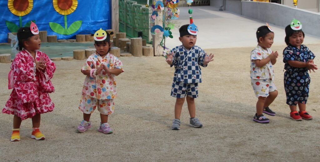 年間行事 4月 入園式 5月 親子歓迎遠足 6月 参観日 園外保育 7月 夕涼み会 キャンプ 9月 運動会 10月 遠足 感謝祭 マラソン大会 引き渡し訓練 11月 幼児祝福式 園外保育 12月 クリスマス会 クリスマスパーティー 1月 カルタ大会 お店屋さんごっこ 2月 リズム発表会 観劇会 3月 お別れ遠足 お別れパーティー 卒園式